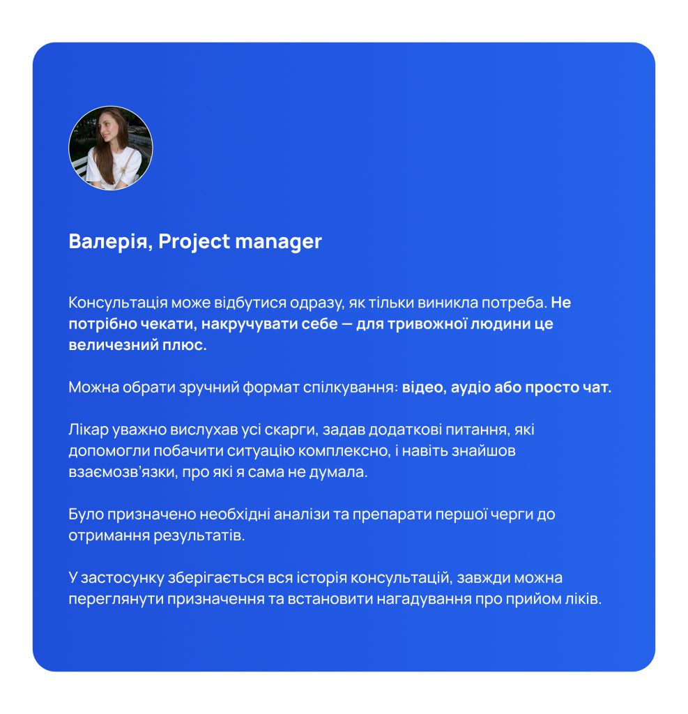 Працівники Involve.Software відзначають передусім швидкість отримання допомоги та зручність взаємодії з лікарями.